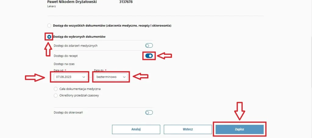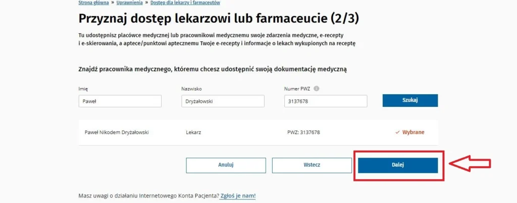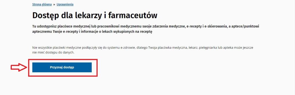 4. W sekcji Dostęp dla lekarzy i farmaceutów – kliknij “Przyznaj dostęp